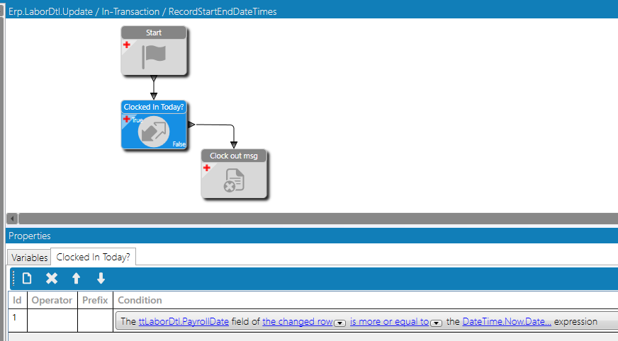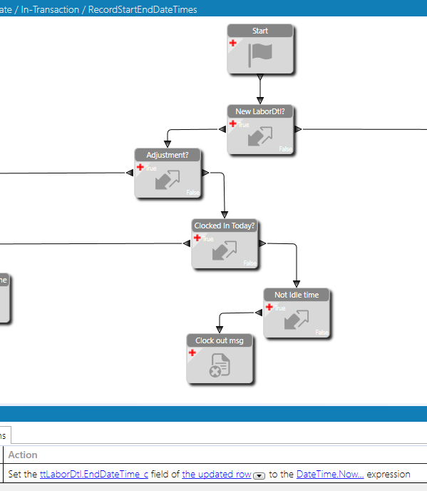 I would be interested in the BPM not allowing people to start/stop activity if they forgot to clock out the day before. Let me know if you are willing to share.