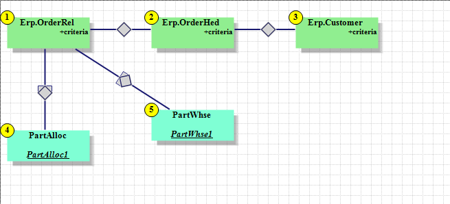 We are attempting to setup the Automate Fulfillment Rules and Process. Our goal is for the system to check all orders as they come in, for include only ship complete, exclude credit holds and if in-stock Inventory is Available (Meaning not allocated to another Order or allocated to a Firm Assembly Job) then it can be allocated and released for picking. We created a BAQ that handles this for the automation process to allocate the correct orders. Here is the tables and joins.
