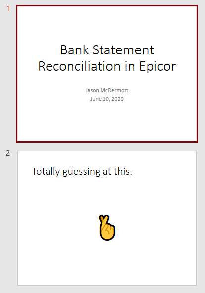 Looking for a procedure on how to do a bank reconciliation in Epicor 10