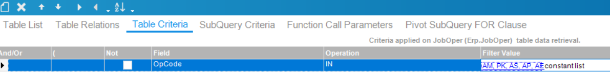 I have a BAQ in which I would like not return a record if only one of the OpCode fields is returned.