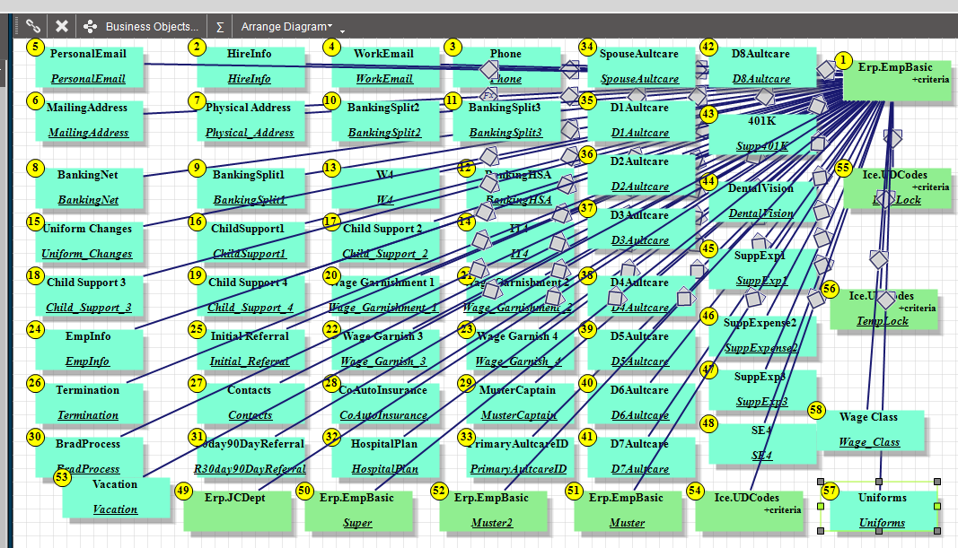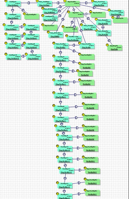 It was a time phase report converted from a Progress DB to SQL. Since progress let you easily to a left outer join and find the first record when it converted they all went to CTE subqueries to return 1 row. (Yech) In addition to timephase it looks up the sales order PO, name & Shipping address and on job rows drills down and gets the part routing, quantity ran or start date if not started.