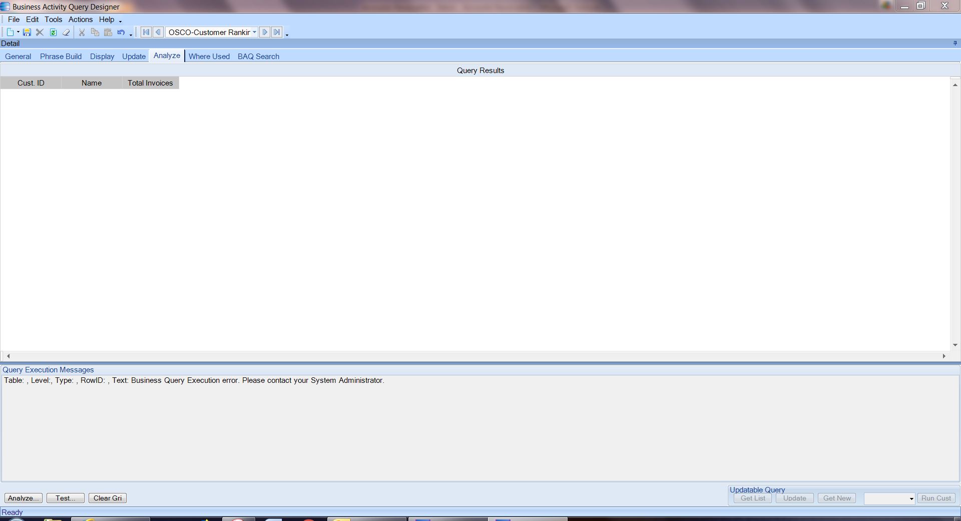 I’m trying to educate myself on BAQs still and some more . . . . and need help generating a BAQ to rank our customers by the total of their invoices for the year. Can anyone give me some pointers?