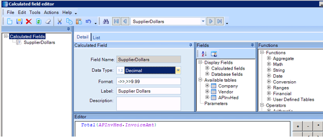 Then go to the aggregate function and find the Total(). Then add the invoice amount field in the parentheses.