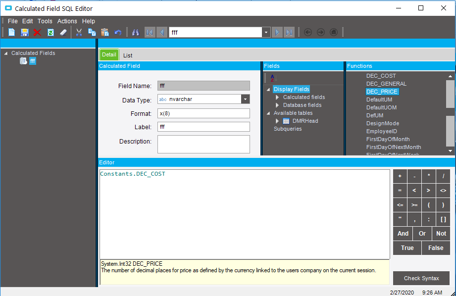 They are DEC_COST, DEC_GENERAL and DEC_PRICE