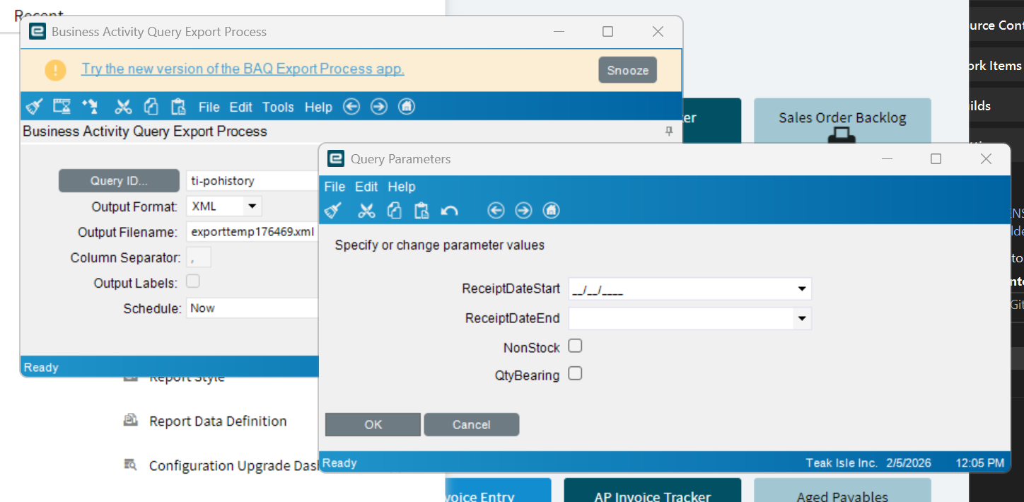 Anyone else having an issue with Kinetic where the BAQ Export Process doesn’t prompt the user when Parameters are defined for a given BAQ? It used to but something changed (bug?)…