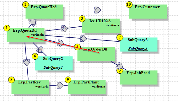 Notice that I can tell from #4 OrderDtl if the line is open. But I’m having trouble filtering #1 QuoteDtl by that. I might have no order detail line, and in that case, the quote detail is still open.