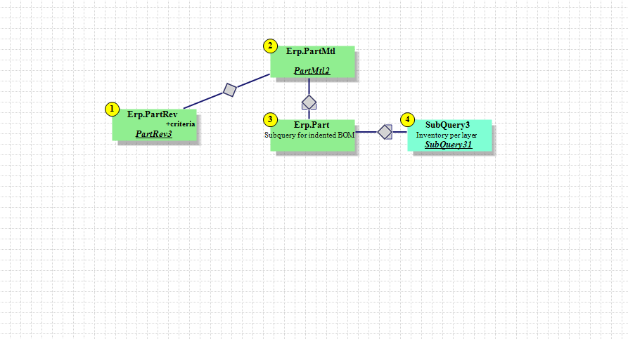 Top-Level BAQ for indented BOM. See SubQuery 3 for the on-hand inventory for the top level.
