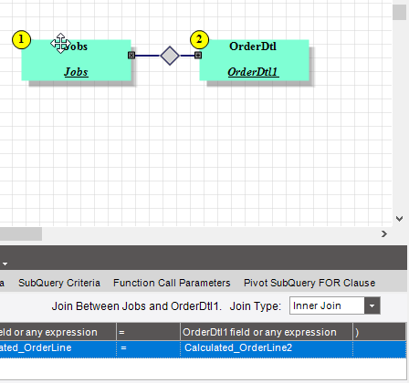 Sum ( case when JobCode like ‘%*%’ then 1 else 0 end) and on the top level query set your where clause to filter base on the calculated field equals to zero. Also I think if you use JobProd to link jobs to the order detail will be much faster than a calculated field, then you can link JobProd to JobHead.
