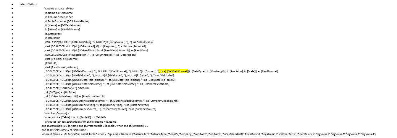 I’m doing some performance troubleshooting in relation to some BAQ queries that are impacting our server. One thing I noticed is that a whole second of work is needed just to prepare for a BAQ query. There is something that keeps showing up in the SQL profiler when we are running BAQ queries and it is one of the things that consumes the highest CPU (more than any of the work done by our customized query itself):