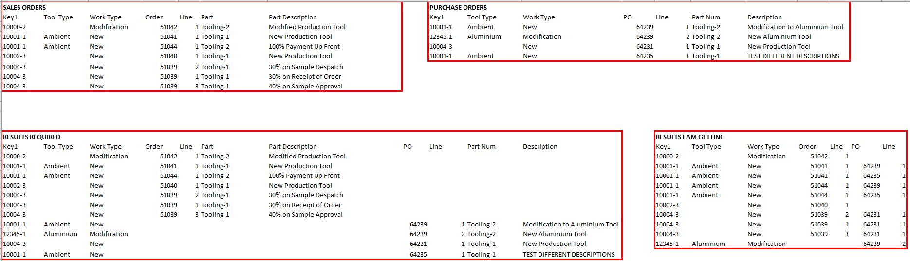 My problem is that I also want a detail tab but as we could have multiple Sales Order Lines and / or Purchase Order lines for one lot of work and all my attempts have resulted in the SO rows and the PO rows being linked together (see pic). The problem with this is that we want to use grouping and summarizing and it is obviously then giving false results. I feel like I should know how to do this but I am going round in circles… can anyone help?