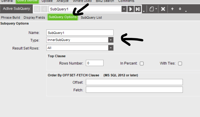 Change Subquery Options to be inner SubQuery