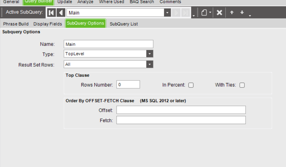 Make sure you main query type is set to TopLevel on SubQuery Options tab