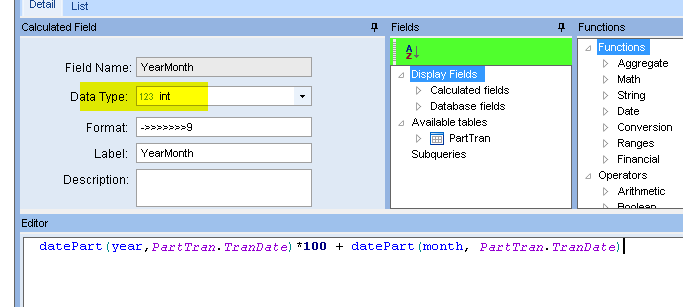 Thanks, Calvin. That worked but I still need to get it to Pivot. How do I tie the YearMonth to a Pivot list?