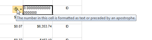 Have you tried limiting the length of the string or rounding the sum to X decimals? It looks like it is being passed to excel as a string, but Epicor is converting the sum as a decimal with way too many trailing zeros. Could be some floating point error with a super minisucle amount instead of zero which rounding would fix.