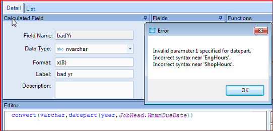 It looks like this is a parser error which has been fixed. I am running a demo of 10.0.700.4 that i installed when it first came out. If I put a bad variable in your year field it gets caught, but if i do it in the second date field it errors out before finding the field.