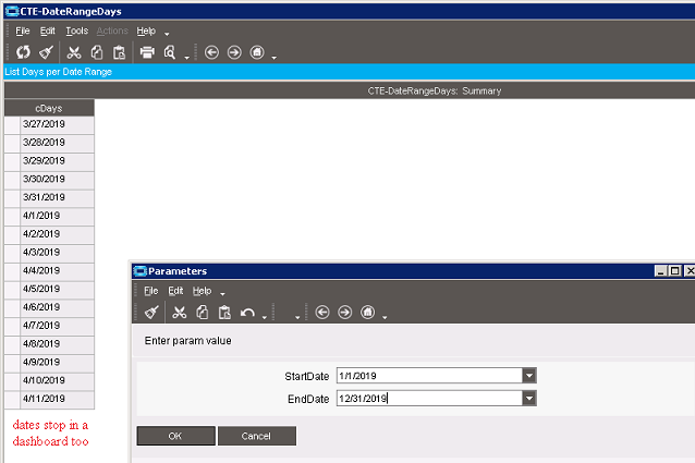 FWIW, I usually just find a well populated table at least midly related to what I am doing and just return the date and group by it. I functionally get a list of every date that means something to what I’m doing. So far it’s worked out for me well. If I’m looking in the past, I can used parttran or laborDtl, as they usually have some record on a date, and if there wasn’t anything on that date, it’s probably not needed for what I’m doing anyways.