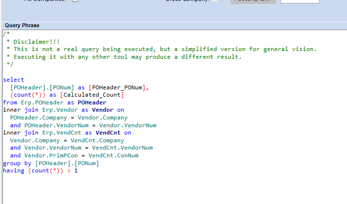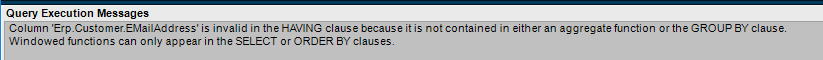 Nice! But apparently adding the subquery criteria throws an error of “Windowed functions can only appear in the SELECT or ORDER BY clauses.” So while Andris could probably set a filter on the eventual dashboard… instead I went to ChatGPT (why not) and it suggested a CTE or subquery I asked about doing it without one of those and it suggested a ‘derived table’ which did work fine in a SQL query but not sure how to do that in a BAQ. Here is the Select statement that worked: