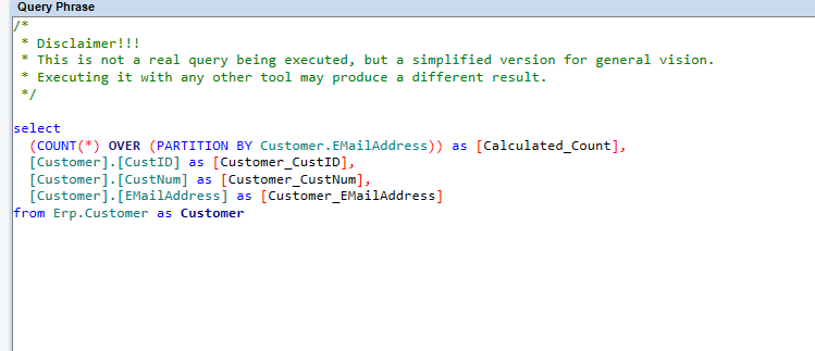 COUNT(*) OVER (PARTITION BY Customer.EMailAddress) AS [Calculated_Count],