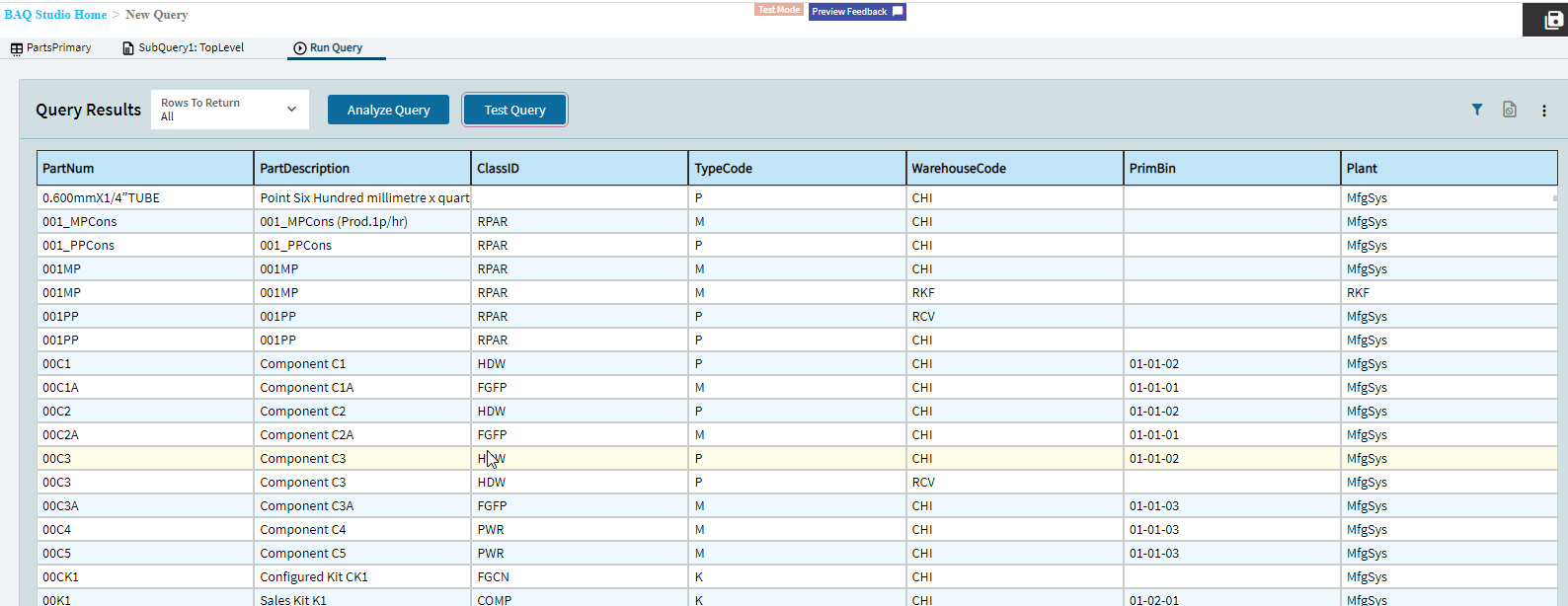 I am trying to learn how to do a BAQ I am trying to do a simple one that lists all parts and the primary bins (all parts even the ones with nothing in them). I have spent a lot of time trying to figure it out and not getting it. Is there a good place for training on them?