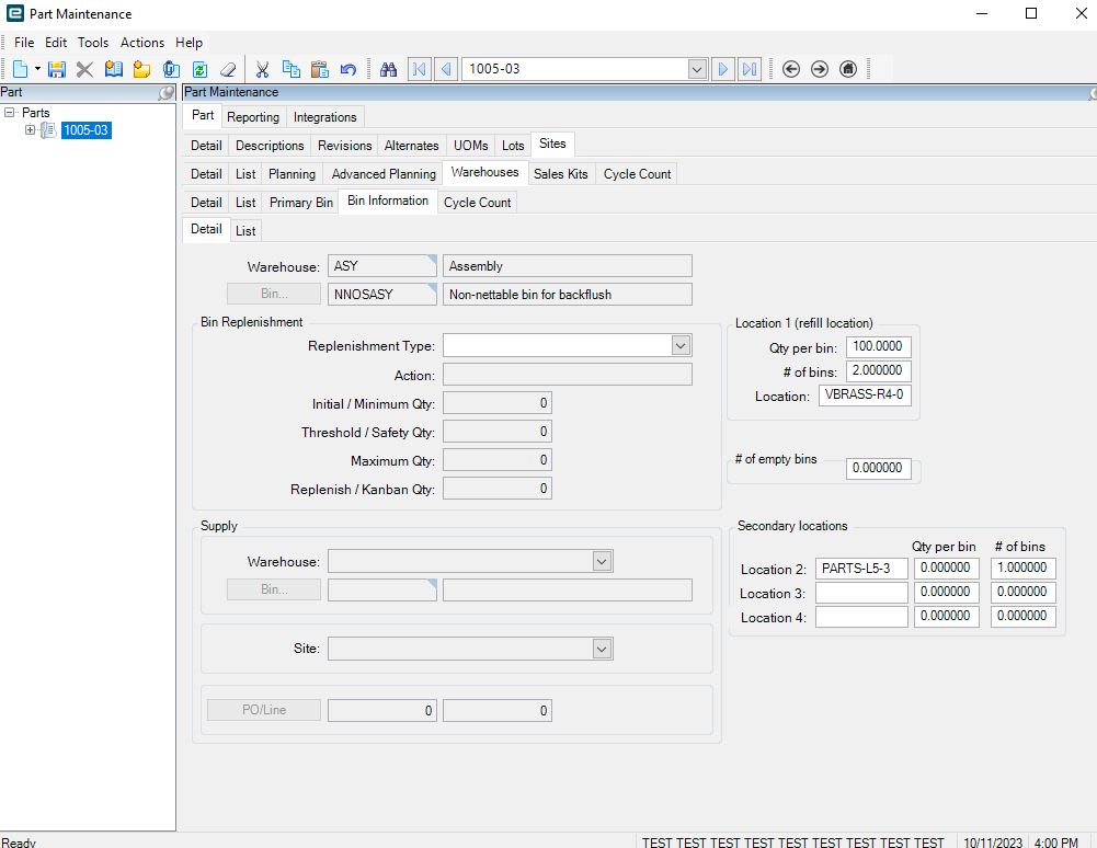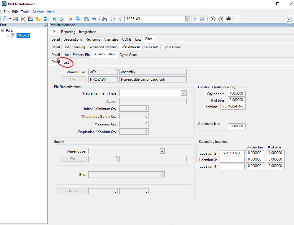 @atuljainajm, you told me that there are two part bin info records for your part, part 1005-03.