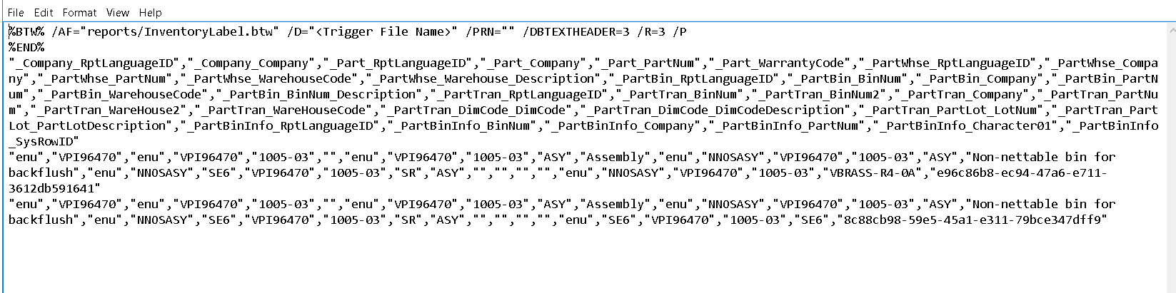 So… it makes sense that in your text file dataset, you are seeing two rows… one for each of the partbininfo rows that exist for your part. It makes sense because in your join you aren’t doing anything to specify which of the two partbininfo records you want are you? You’re just saying give me all the partbininfo rows where the part number is 1005-03… and there are TWO rows that match that join.