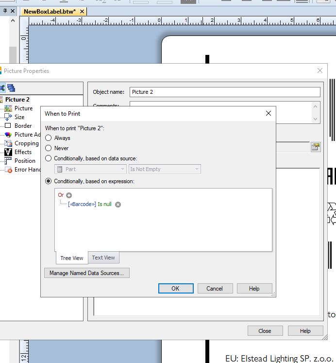 We are creating new box labels for our fitting so far this is working well as its creating the label with the relevant data from epicor per sku such as number of lights etc however we need the product image on the label on the template we have 1 sku which is used as the base but we wont it so the image that comes in each time is dependant on what the SKU is so it matches the product name