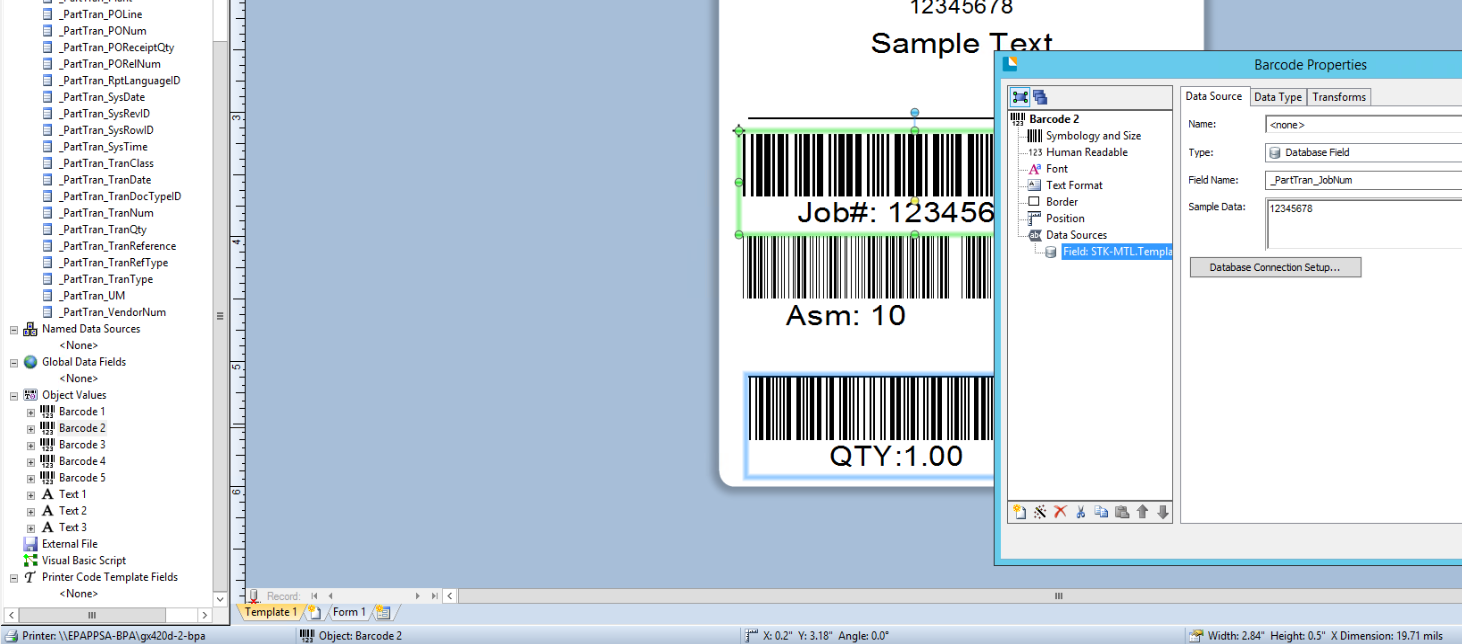 Also where did that Job#: field come from, does you BarTender file have multiple Layers?
