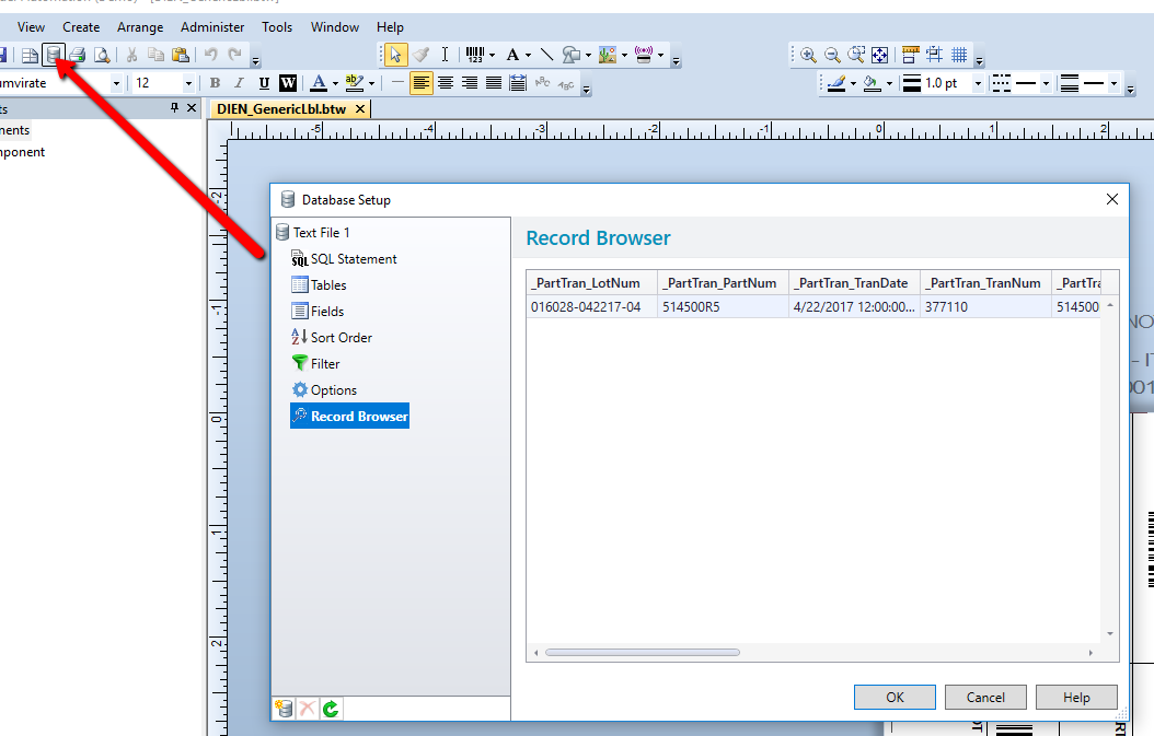 without seeing it. Perhaps you have bad “Database” setup in your BarTender Label