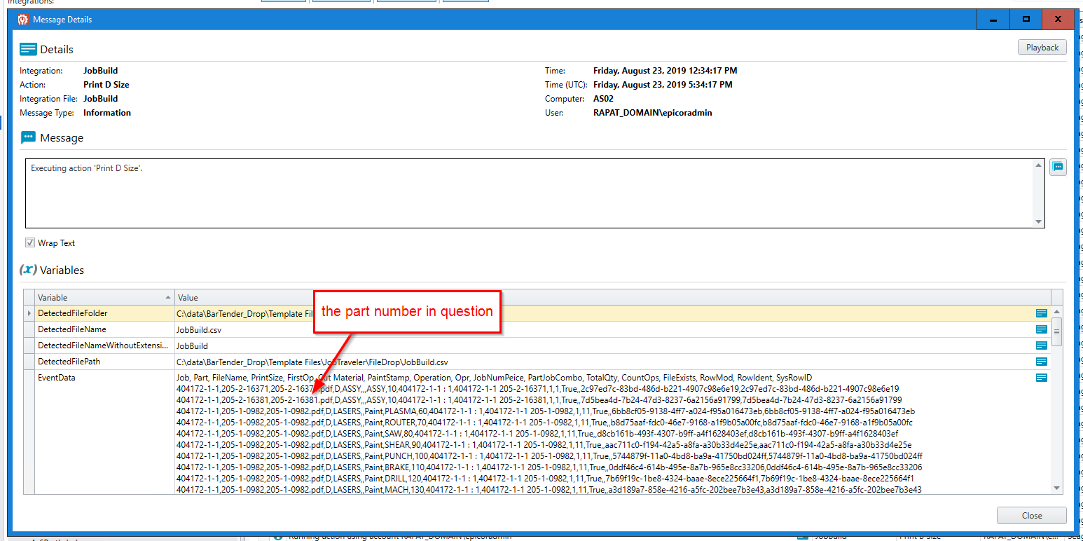 The problem that I think I am having is that a label (or a D-size print in this specific case) doesn’t print out with the rest of the batch. It simply skips it. I can see in the file that was sent, and the logging on the integration builder that the record is in fact there. I have seen this before with some other labels to. For some reason, pretty randomly, one of the labels will just be skipped.