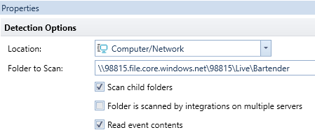 Morning - we have been using bartender for some years now and migrated to the cloud last year and was pleasantly surprised how easy it was using the fileshare drive which the reports send to then bartender reads from there - so far no speed issues - just normal delay once the files are picked up by bartender and sent to the printer. As long as the folder to scan is specified as below then no issues for bartender to access the files to print