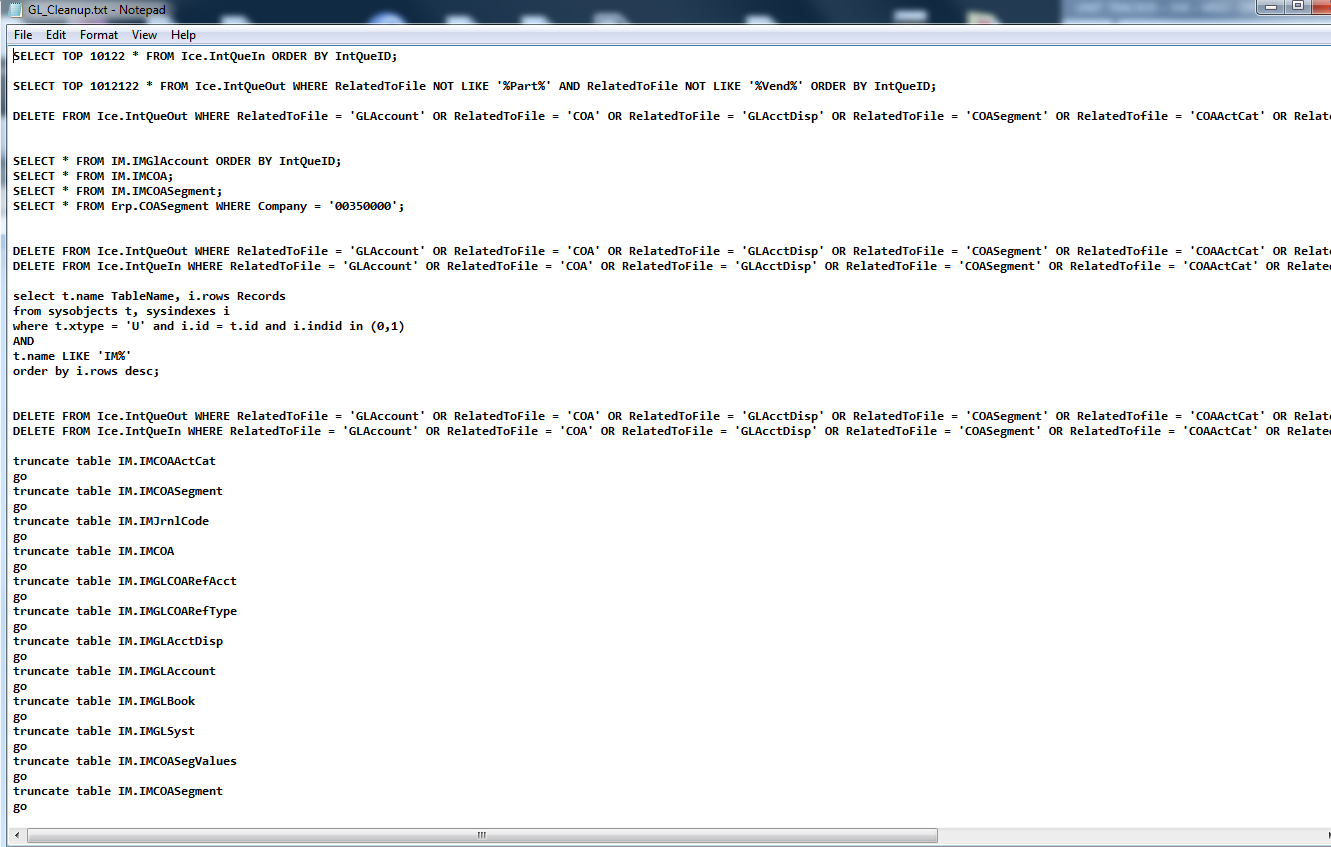 Example 2 (Another Manual Sshot of Queries to fix Bad GL Data):