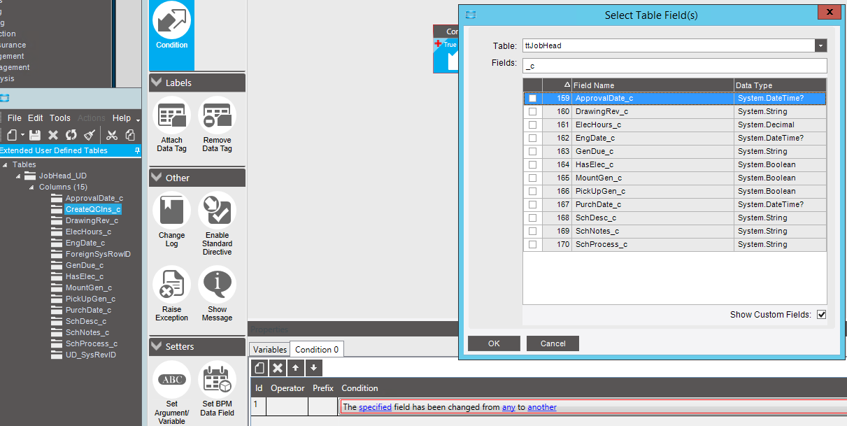 I feel like I am going crazy because this doesn’t make sense. I added a new extended UD field to JobHead. I went into a BPM to add that field in a condition and it wasn’t there. I have other UD fields on JobHead that are there, the new one is not.