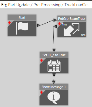 The objective is if a new or updated part is in one of four product groups, then set our truckload freight UD field to true and pop up a message.