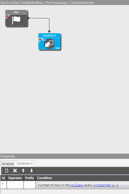 I am creating a BPM that will check to see if there are any attachments on the GLJrnDtl before it posts. I have figured out the relationship between XFileAttch and GLJrnDtl (Key1 = COACode, Key2 = FiscalYear, Key3 = JournalCode, Key4 = JournalNum, Key5 = JournalLine). I am doing a Pre-Processing on GLJrnGrp.CheckBeforePost. Does anyone know how to check the most recent GL Group with an attachment without using code? If this method had temp tables i could easily do it.