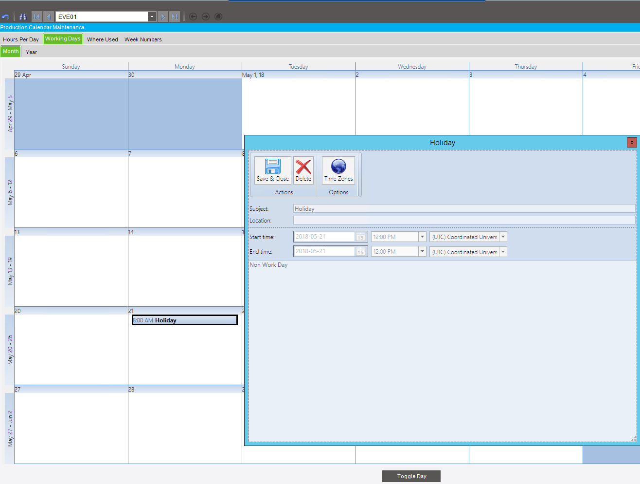 In my production calendar, I entered my holiday. But my code doesn’t take into my holiday in my calendar. In the production calendar, I entered on my toggle day, Holiday.