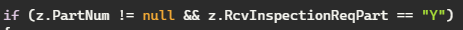 if (z.PartNum != null && z.RcvInspectionReqPart == "Y")