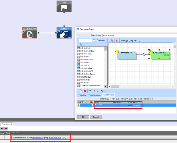 Based on the logic I presented, count(ShipTo.Country = “USA”) < 1 would be true and result in Yes as you have shown. Unless you used Count(ShipTo.Country = “USA”) !< 1 in the query statement