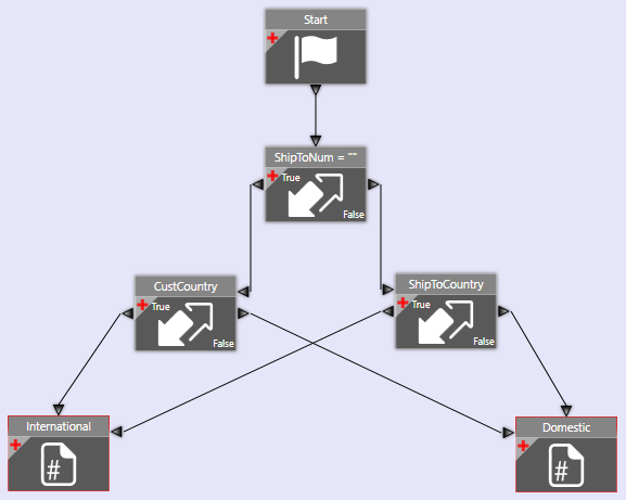 I have it setup as you showed, with the Count(ShipTo.Country = “USA”) < 1. When I change the ship to address between domestic and international and save it gives me the correct response. Perfect!