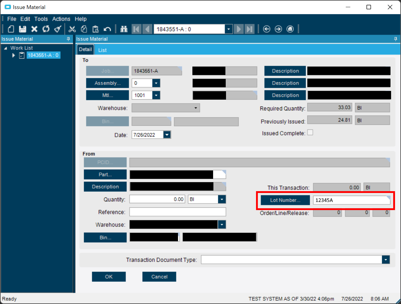 On the Issue Material screen, I need to catch when a user enters a LotNumber and run some logic against the entered/selected value.
