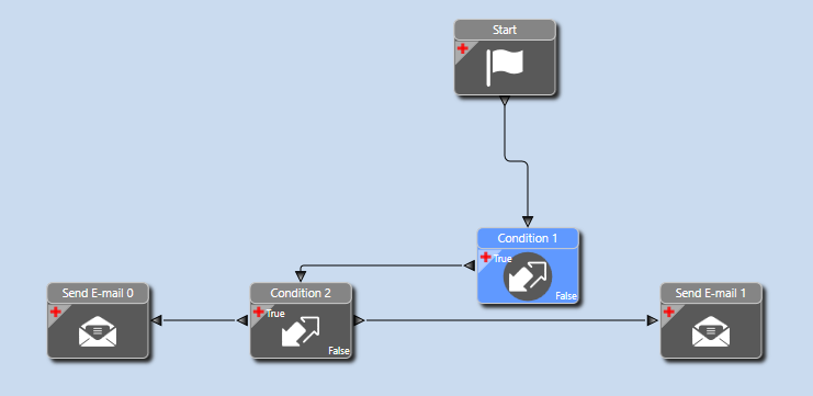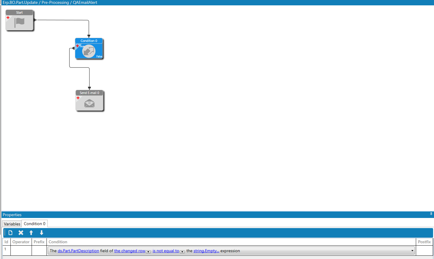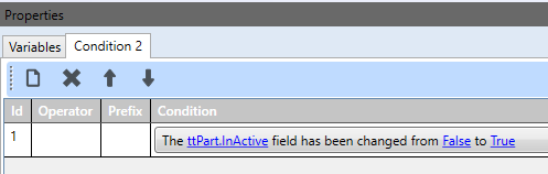 In this particular one the secondary condition block is looking to see whether we are activating or deactivating a part to determine which email to send: