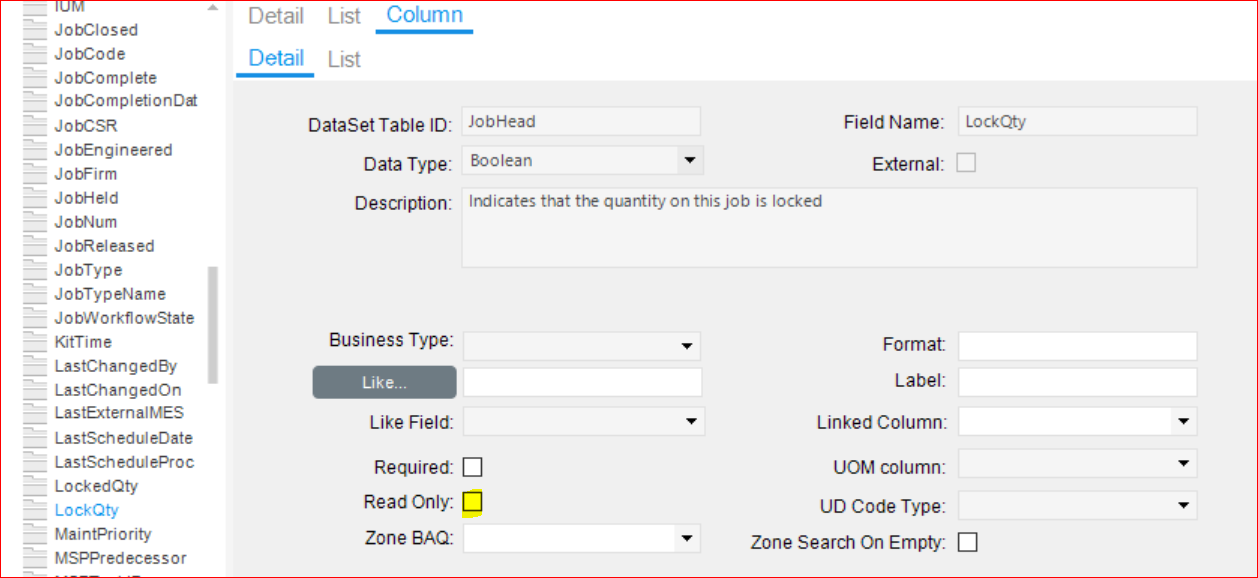 I am looking to set the Lock Qty field to read only based upon a BPM that already sets the field to True when the job is released. We have users that despite being told that once the job is released and us setting the Lock Qty to true via BPM will still go into the job and un lock the quantity and then change the job quantity.