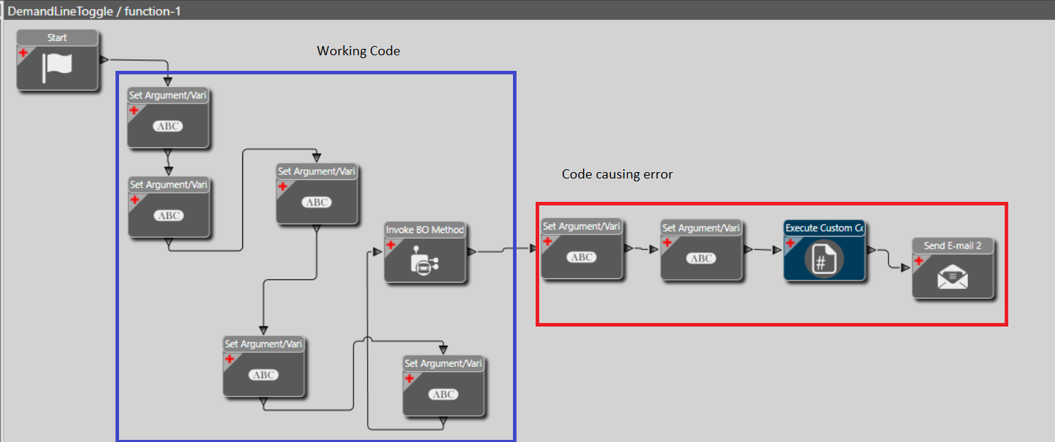 New error below. I have no idea where this one stems from, but I assume it has to do with my variables again, or my c# custom code. New function set up, errors, and C# below: