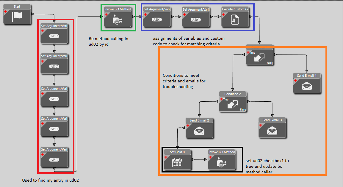 I am trying to have this function update table ud02 when certain criteria are met. I would like to use the set field widget in function designer. I also thought that after setting the field to true I would need to call in the update bo method caller. Below is what I have created, but it does not push the updates to the ud02 table.
