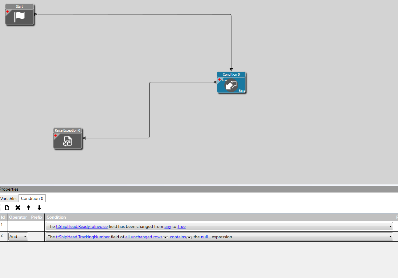 So I have a couple of bpms one to make sure the correct date is put in the shipped date when shipped is ticked and then this one to make sure that something is in the tracking number when shipped is ticked, now it works but i get an error instead of the message i want.