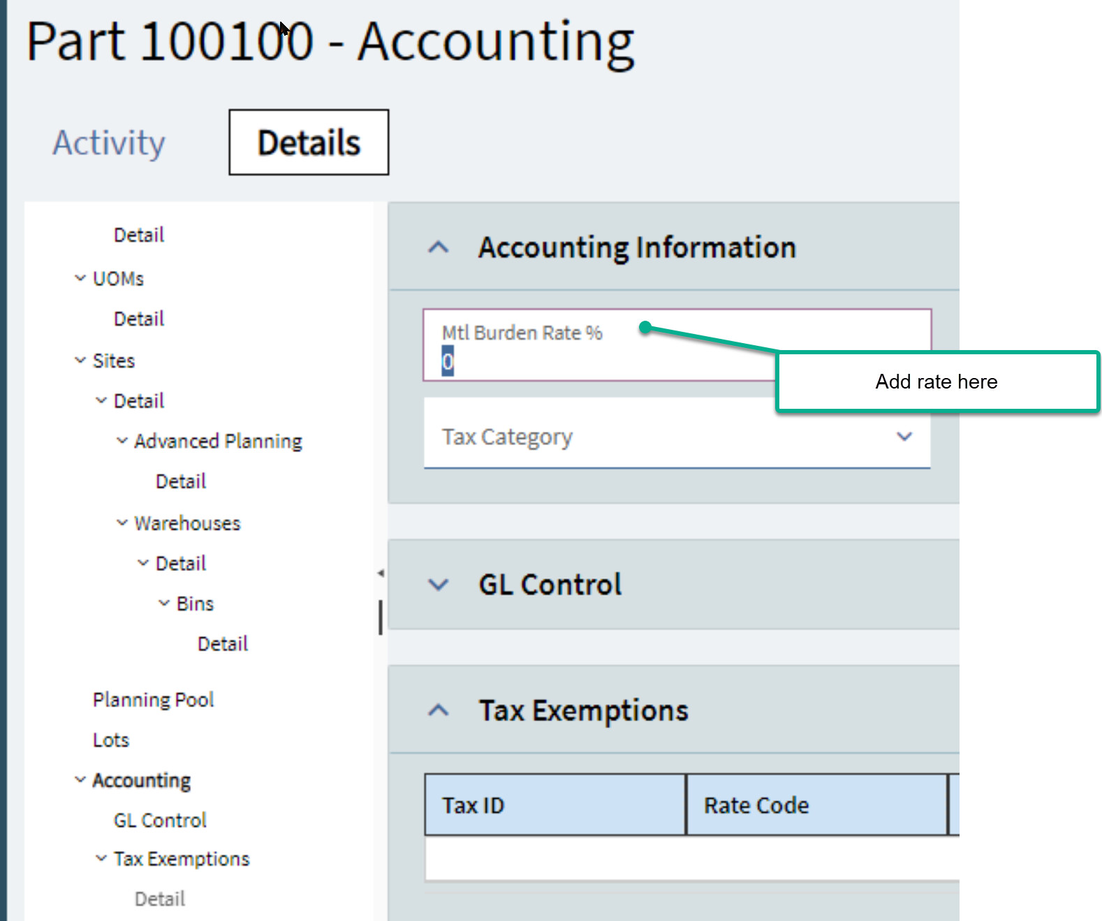 Thanks Bruce, in this case I’m not sure we would be able to use the Mtl Burden Rate %, as in my research it looked like this is incompatible with the landed cost module which we plan to implement in the near future. From what I had read you can’t have a Mtl Burden % on a part and also use the landed cost module for the same part, but I could be mistaken. Am I mistaken on that?