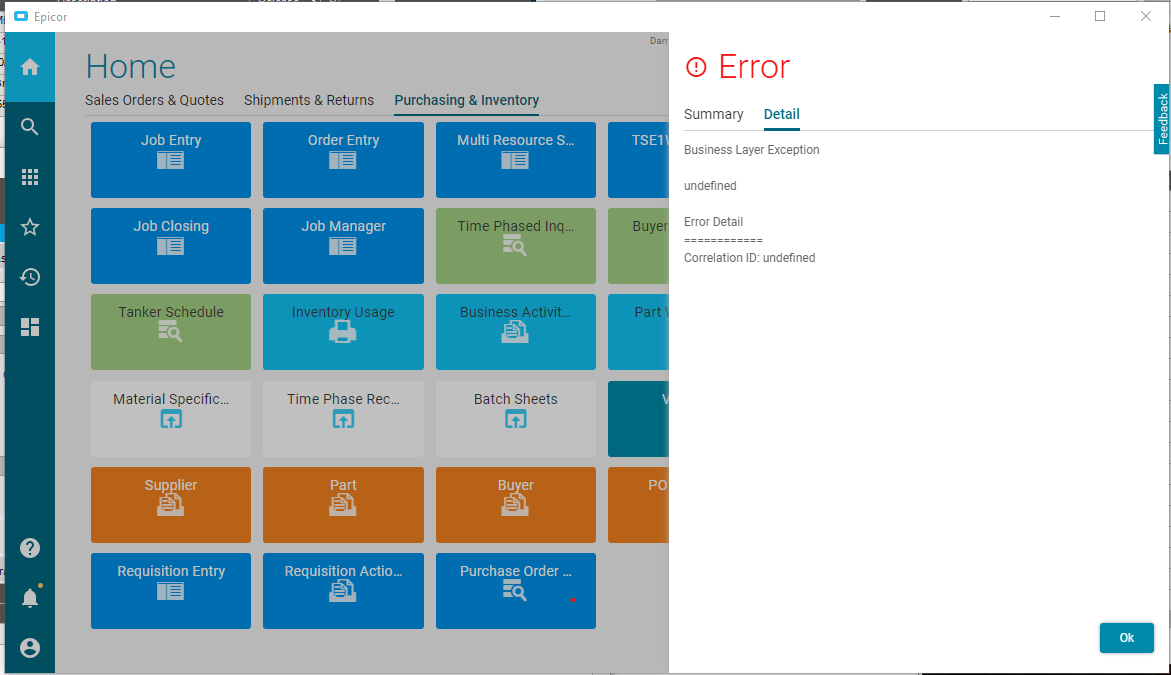 Yeah hopefully providing the full error stack to trace it. Although it seems weird enough to require a call to epicor support.