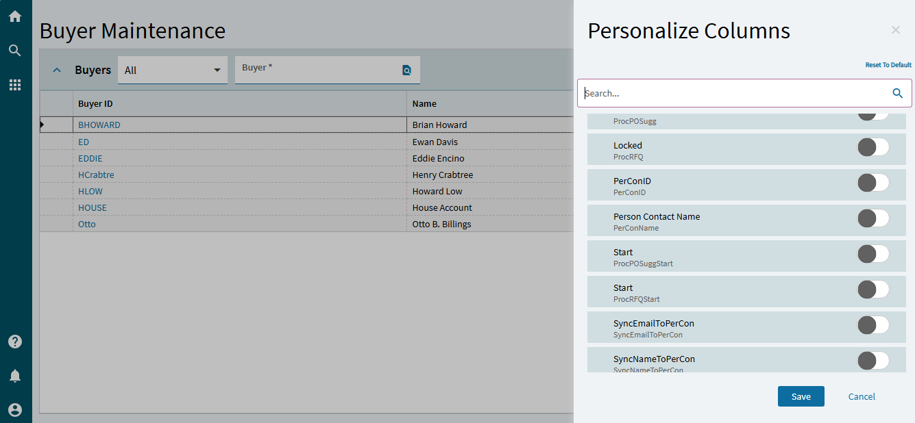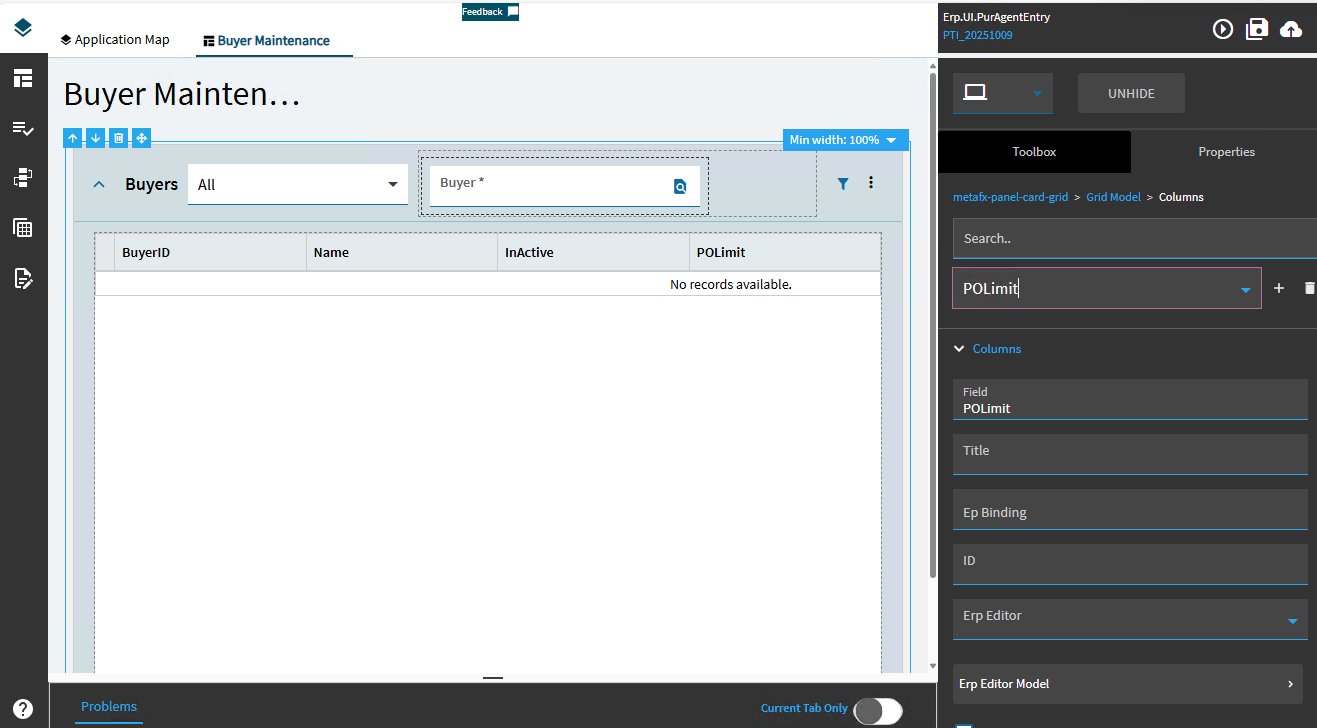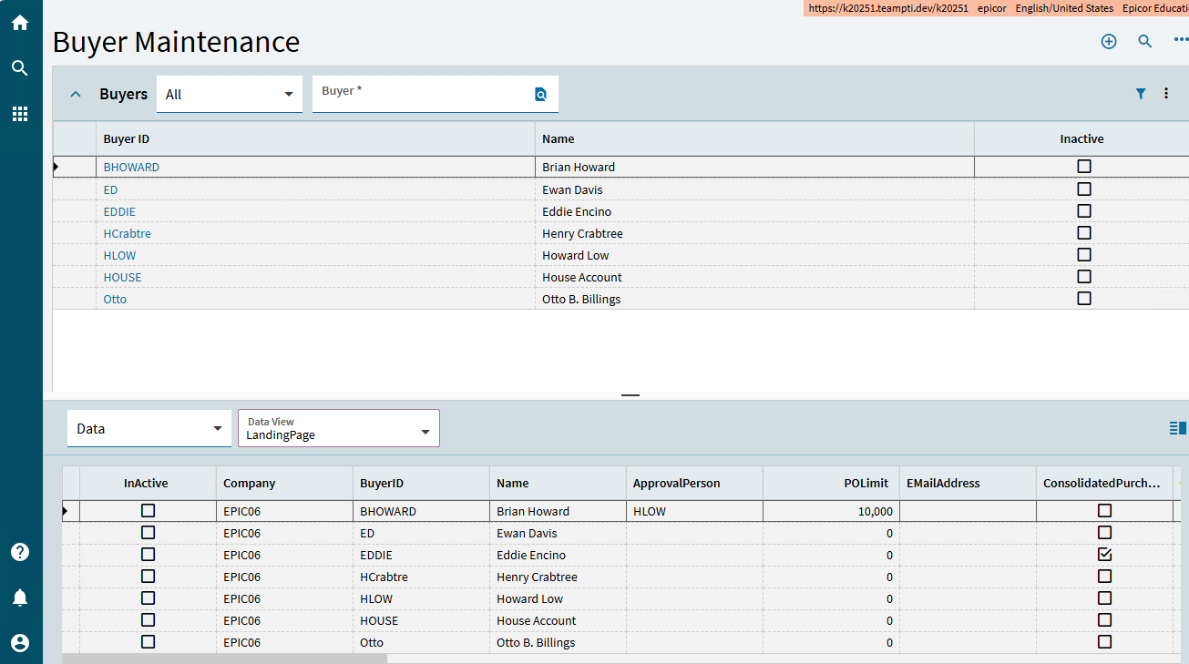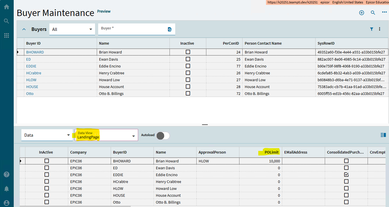 The Controller, who is responsible for setting buyer limits, would like to see the PO Limit on the landing page instead of clicking into each buyer. Sounds reasonable. But in both 2024.1 and 2025.1, I don’t see PO Limit in the Personalize Column. OK, I see the data in the LandingPage data view. Let’s just add a column in a new layer. It never displays. I try adding other columns that are in the Personalized Columns list. They all display correctly. I have a case in with Epicor, but can a few others check my work and see if it’s just me?