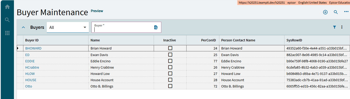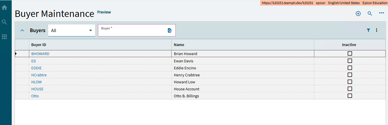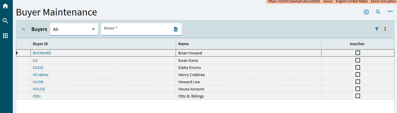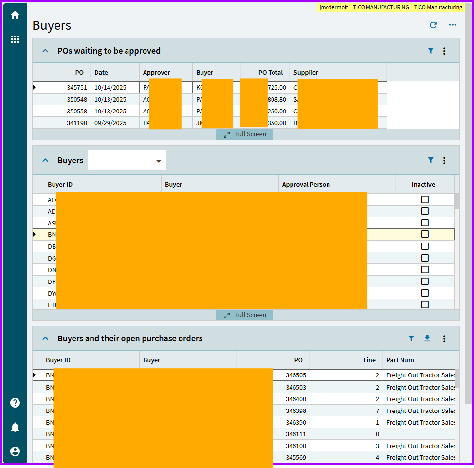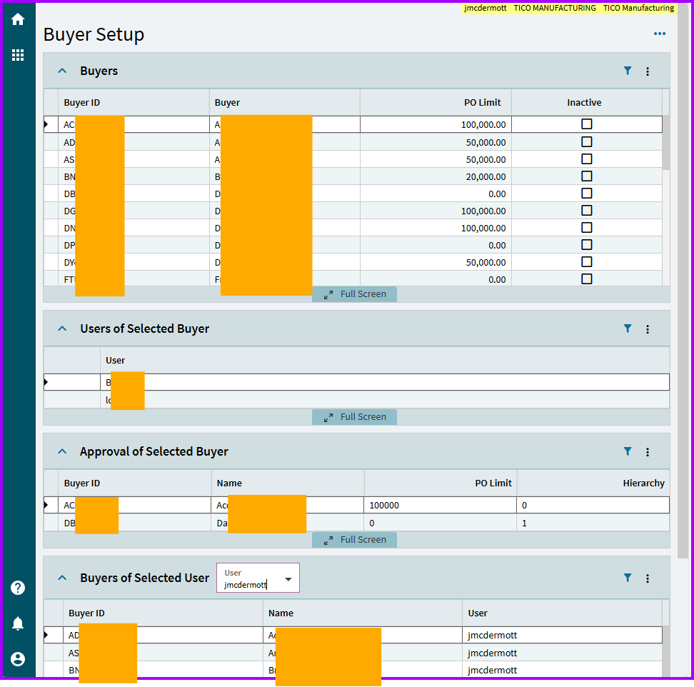 Obviously you know how to make a BAQ, etc., but we saw the need to have a separate “Buyer setup” since there is a lot lacking there. For example, the hierarchy of approval for that buyer. And a reverse lookup (what Buyers does this user have access to). And, you know, the PO limit.