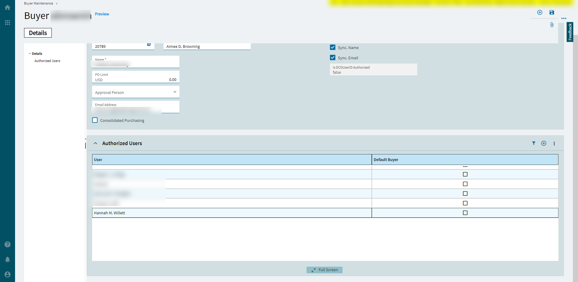 I was just working with support and found a larger issue. I can’t even add authorized users to any of the old buyers. Our DB was converted by Epicor and I am wondering if a conversion issue.
