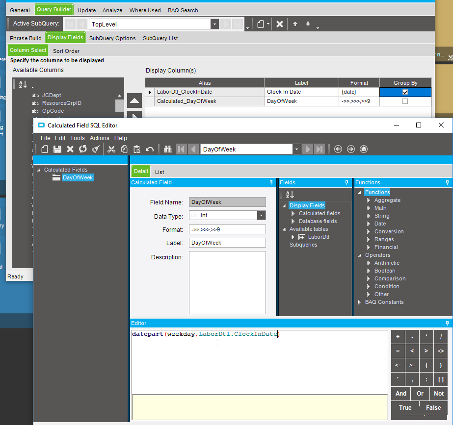 There has been lots of discussion date tables around here. Some solutions are more complicated than others. I personally like to find a well populated table that more than likely has all of the dates that I need, then only grab the date field and group by it. It’s a ready made list of dates. An example for past dates would be the LaborHead or LaborDtl table, people have to clock in and out on working days, so the days that wouldn’t be in the list are generally non-working days, and you can filter out others (like weekends) after you have that list. It’s not 100% fool proof, so don’t use it for anything legally binding, or incredibly important, but most of the time it’s a quick an dirty way to capture a vast majority of the cases.